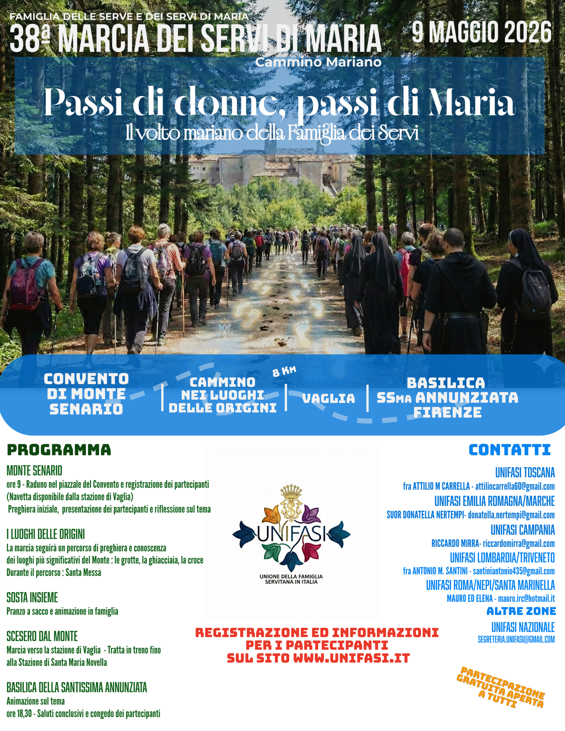 SI CONSIGLIA DI ARRIVARE A FIRENZE ALLA STAZIONE DI SANTA MARIA NOVELLA E PRENDERE IL TRENO 18893 ALLE ORE 8:40 E SCENDERE A VAGLIA A VAGLIA SONO DISPONIBILI LE NAVETTE DELLA MARCIA PER IL CONVENTO DI MONTE SENARIO. PER LE AUTO SI CONSIGLIA IL PARCHEGGIO DI FORTEZZA